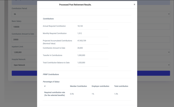 This is a product that helps to foresee the medical expenses after retirement. This application factors in elements such as; current salary, user contribution to the medical insurance, inpatient and outpatient insurance limits, family size among other factors.